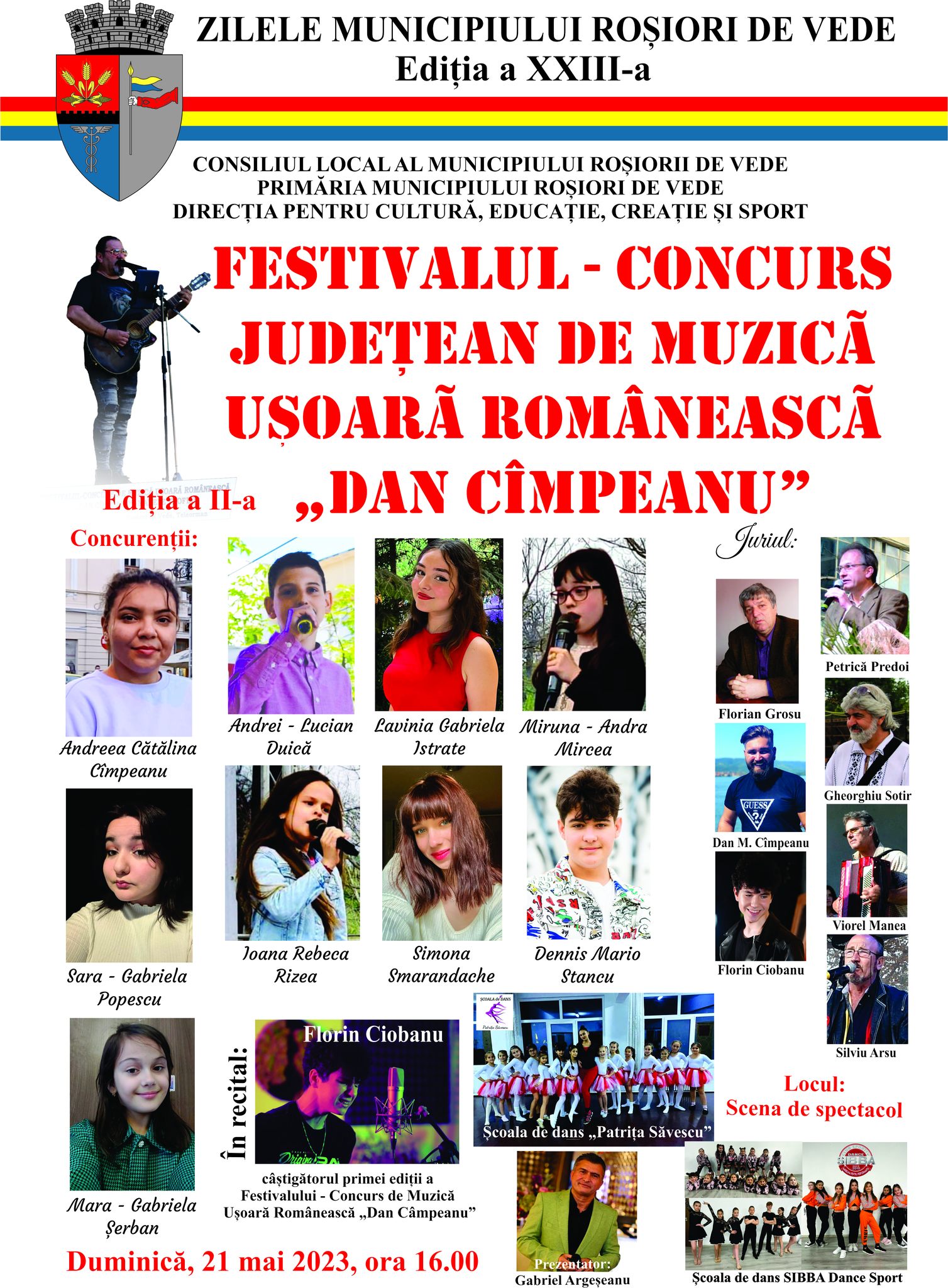 Festivalul – Concurs Județean de Muzică Ușoară „Dan Cîmpeanu”, ediția a II-a, 21 mai 2023. writeriunie 20, 2023iunie 20, 2023Uncategorized Navigare în articole PrecedentUrmător A doua ediție a Festivalului – Concurs Județean de Muzică Ușoară „Dan Cîmpeanu” a fost câștigată de Ioana Rebeca Rizea. Partajează asta: Partajează pe X(Se deschide într-o fereastră nouă) X Partajează pe Facebook(Se deschide într-o fereastră nouă) Facebook Apreciază Încarc... Similare
