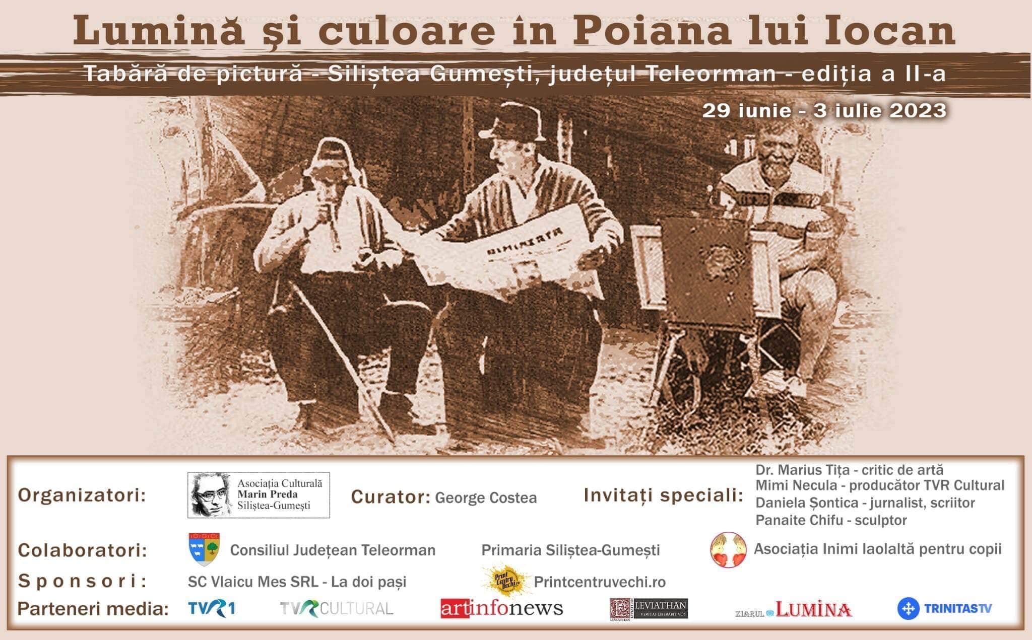 Începând de joi, 29 iunie, timp de cinci zile, Siliștea Gumești este gazda Taberei de pictură „Lumină și culoare în Poiana lui Iocan”. Conform levithan.ro au confirmat participarea 16 artiști: Dorin Apreutesei, Mihai Boroiu, Mihai-Marin Cârstea, Dan-Cristian Chiriac, George Costea, Freya, Adonis Ghițulescu, Cristian Iancu, Lucia Juncu, Paul Mecet, Răducu Mihai, George Păunescu, Mihai Șerbănescu, Tudor Șerbănescu, Daniela Șontică, Emilia Trandafir. Evenimentul, la inițiativa artistului plastic George Costea, este organizat de Asociația Culturală „Marin Preda” în colaborare cu Primăria Siliște Gumești și Consiliul Județean Teleorman. Tabăra va culmina cu un vernisaj special la Căminul cultural din localitate, prezentat de Marius Tița, în data de 3 iulie a.c., începând cu ora 18.00, mai arată leviathan.ro.