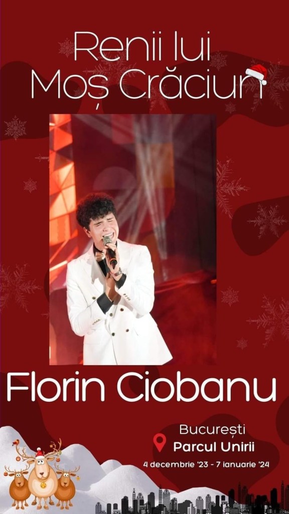 In serile zilelor de 𝟏𝟕 și 𝟐𝟏 𝐝𝐞𝐜𝐞𝐦𝐛𝐫𝐢𝐞, de la ora 𝟏𝟗:𝟎𝟎, rosioreanul Florin Ciobanu va concerta la Târgul caritabil de Crăciun din Parcul Unirii, Bucuresti.