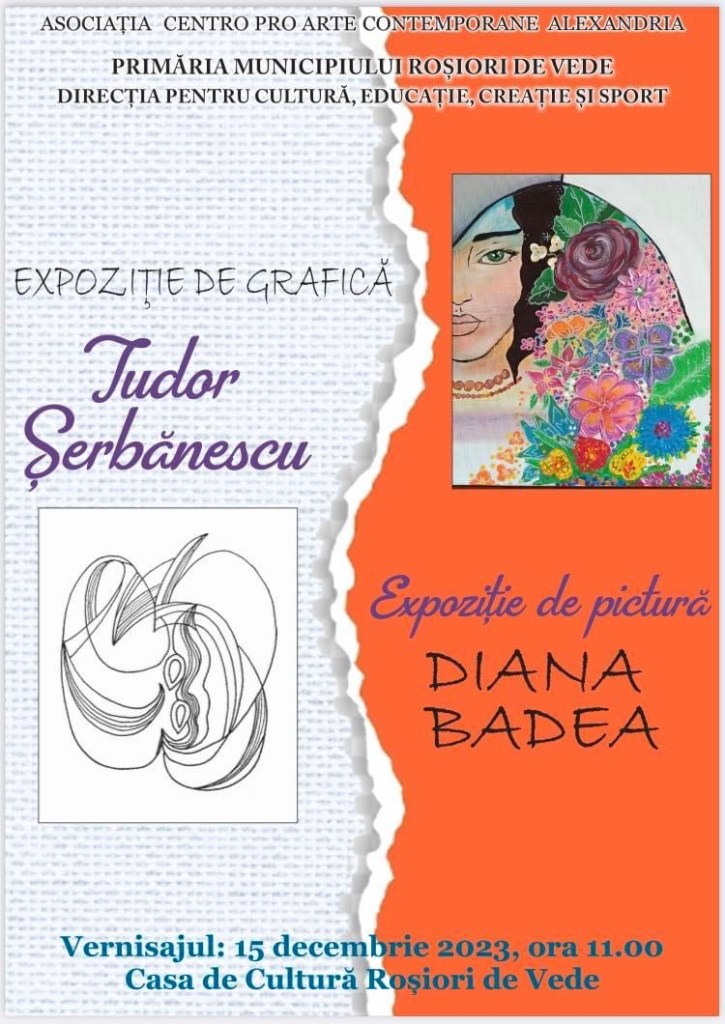 Artiștii plastici Tudor Șerbănescu și Diana Badea expun vineri, 15 decembrie 2023, la Casa de Cultura din Rosiorii de Vede.