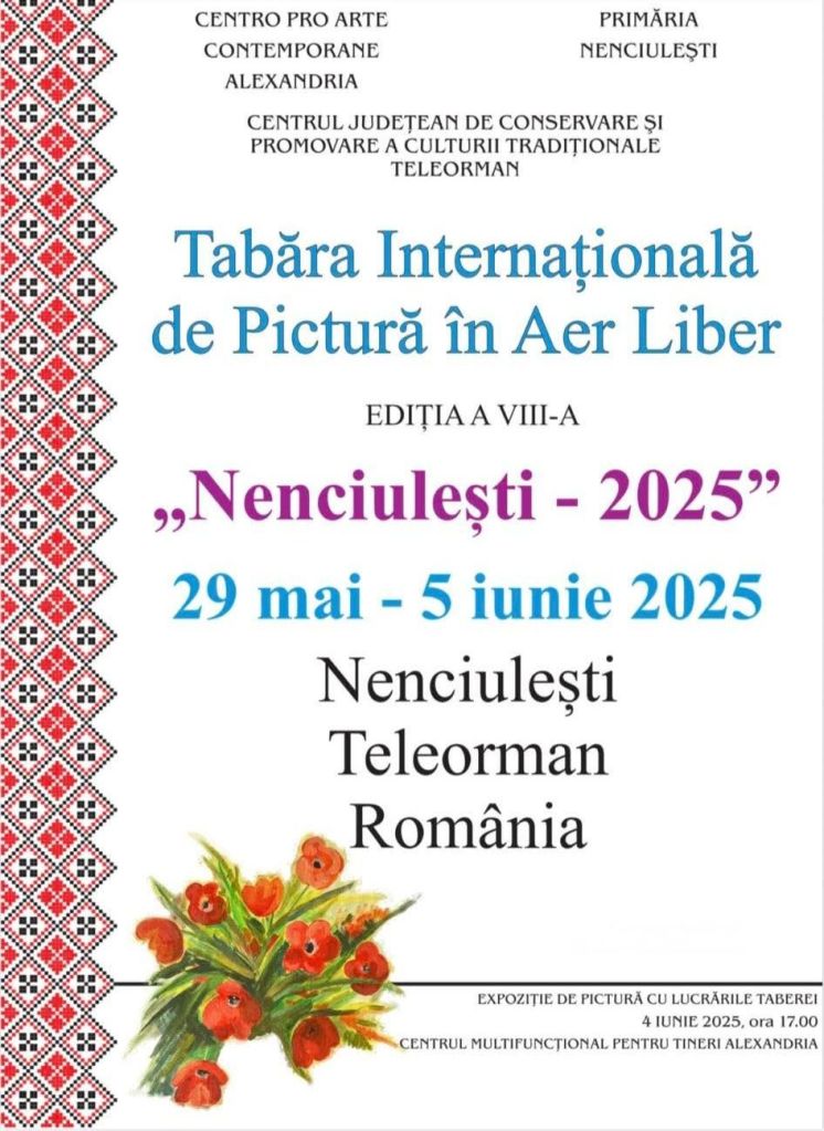 La Nenciulești, între 29 mai și 5 iunie 2025, se va desfășura cea de-a VIII-a ediție a Taberei Internaționale de Pictură în Aer Liber „Nenciulești – 2025”.