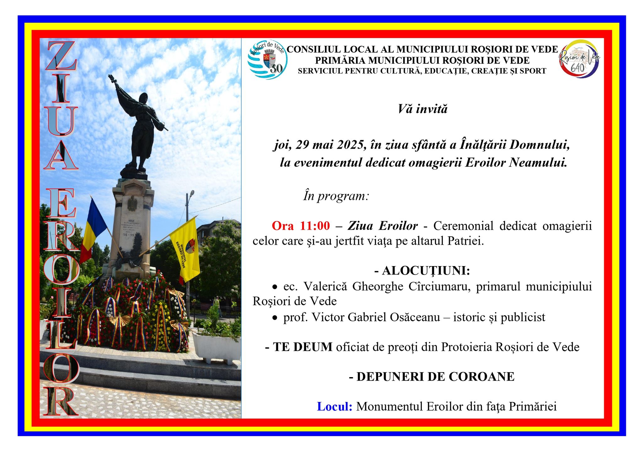 Ziua Eroilor writermai 28, 2025cultura, Russenart Navigare în articole PrecedentUrmător Ceremonialul civil și religios va avea loc joi, 29 mai 2025, la ora 11:00, cu ocazia Zilei Eroilor. Partajează asta: Partajează pe X(Se deschide într-o fereastră nouă) X Partajează pe Facebook(Se deschide într-o fereastră nouă) Facebook Apreciază Încarc... Similare