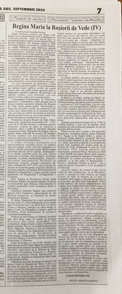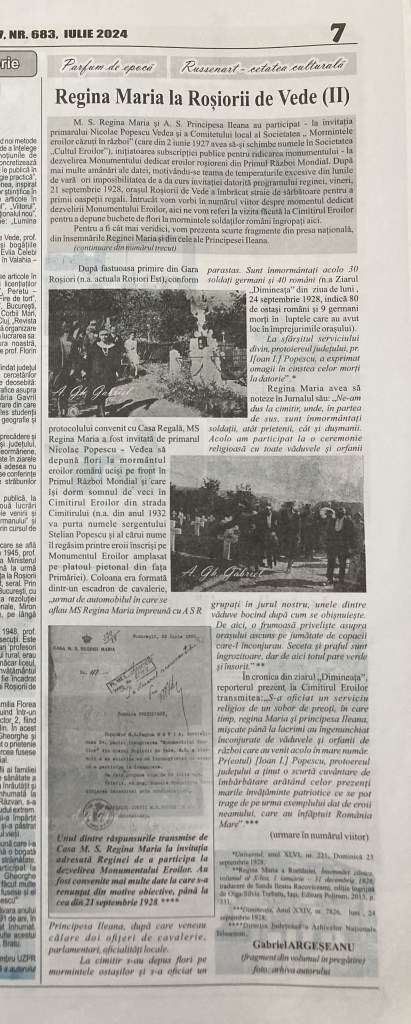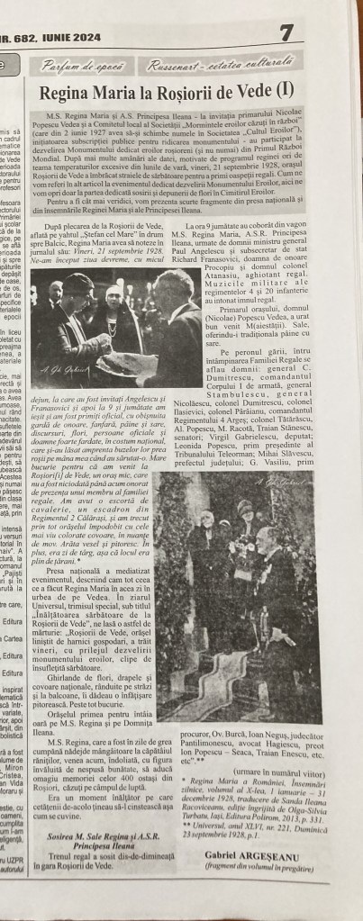Un articol în patru episoade, publicat în ziarul DRUM, despre vizita Reginei Maria la Roșiorii de Vede, ocazionată de dezvelirea Monumetului Eroilor 28 septembrie 1928. Informații și fotografii inedite.